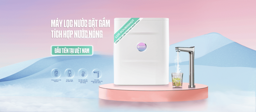 Máy lọc nước đặt gầm tích hợp nước nóng của thương hiệu A. O. Smith - là thương hiệu được biết đến với hàng loạt giải pháp và hàng trăm phát minh, sáng chế về công nghệ ứng dụng mang lại không chỉ sự tiện nghi mà còn là những tiện ích thực sự cho khách hàng.